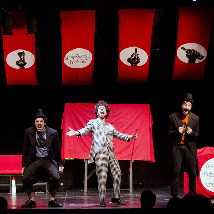 Spazio Kor piazza San Giuseppe, Asti, AT, ItaliaGenerazione Disagio di e con Enrico Pittaluga, Graziano Sorressi, Andrea Panigatti, Luca Mammoli regista e co-autore Riccardo Pippa consulenza scene e costumi Margherita Baldoni luci Max Klein disegni Duccio Mantellassi produzione Proxima Res Premio Giovani realtà del teatro 2013 Menzione speciale Premio Scintille 2013 di Asti Teatro 35 Menzione speciale Premio nazionale Intransito (Teatro Akropolis 2013) «Sappiamo […]